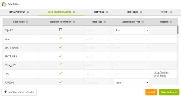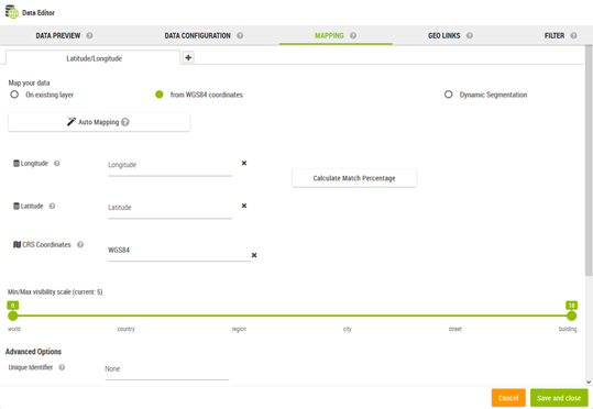 The mapping tab is used to defined how the current dataset is transformed into a geographic dataset.