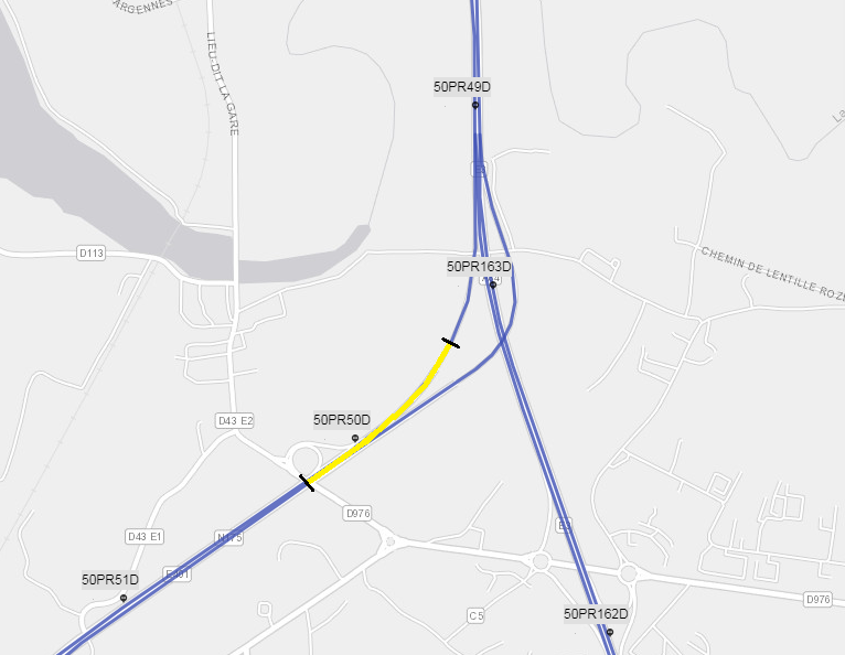 Example: 50PR49D + 650 correspond to the point placed at 650 meters from the milestone 50PR49D.
