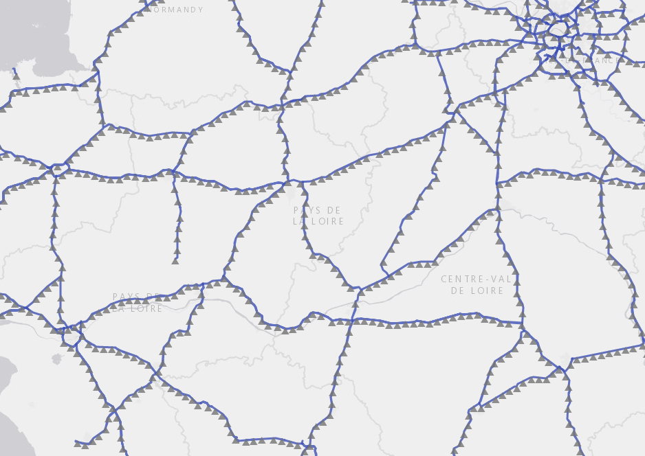 The represented data on the map are expressed in the form PR + Abscissa, i.e. a point on the map is identified by a reference point and by a distance in meters.