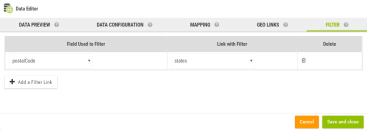 In order to attach a filter to a dataset, one has to go to the tab FILTER from the Data Editor and enter two values:
