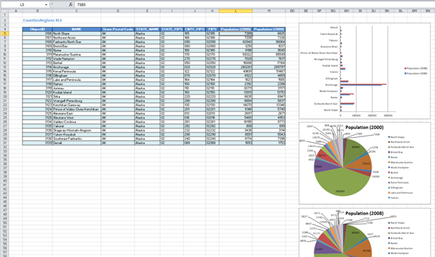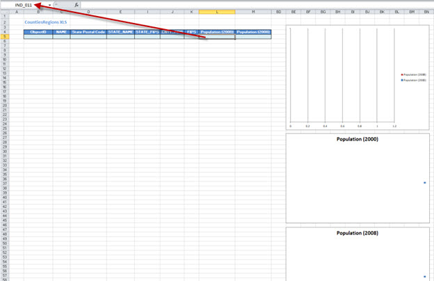 It is possible also to add diagrams in those templates, also keeping in mind that when data is assigned to the diagram, instead of column ranges, the name of that field has to be used, e.g.in a histogram series values instead of “=CountiesRegionHystPie.xlsx! $L$5:$L$10” you have to use “=CountiesRegionHystPie.xlsx!IND_01”. Thus the values will be added properly to the diagrams as well