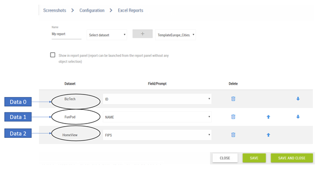 It is possible to associate a report to one or multiple dataset in order to run the report against a specific area. We call that king of reports “georeports”.